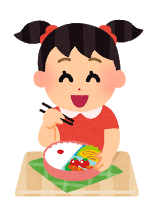 お弁当を作ってもらった事に感謝し、みんなで一緒に楽しく食べます。